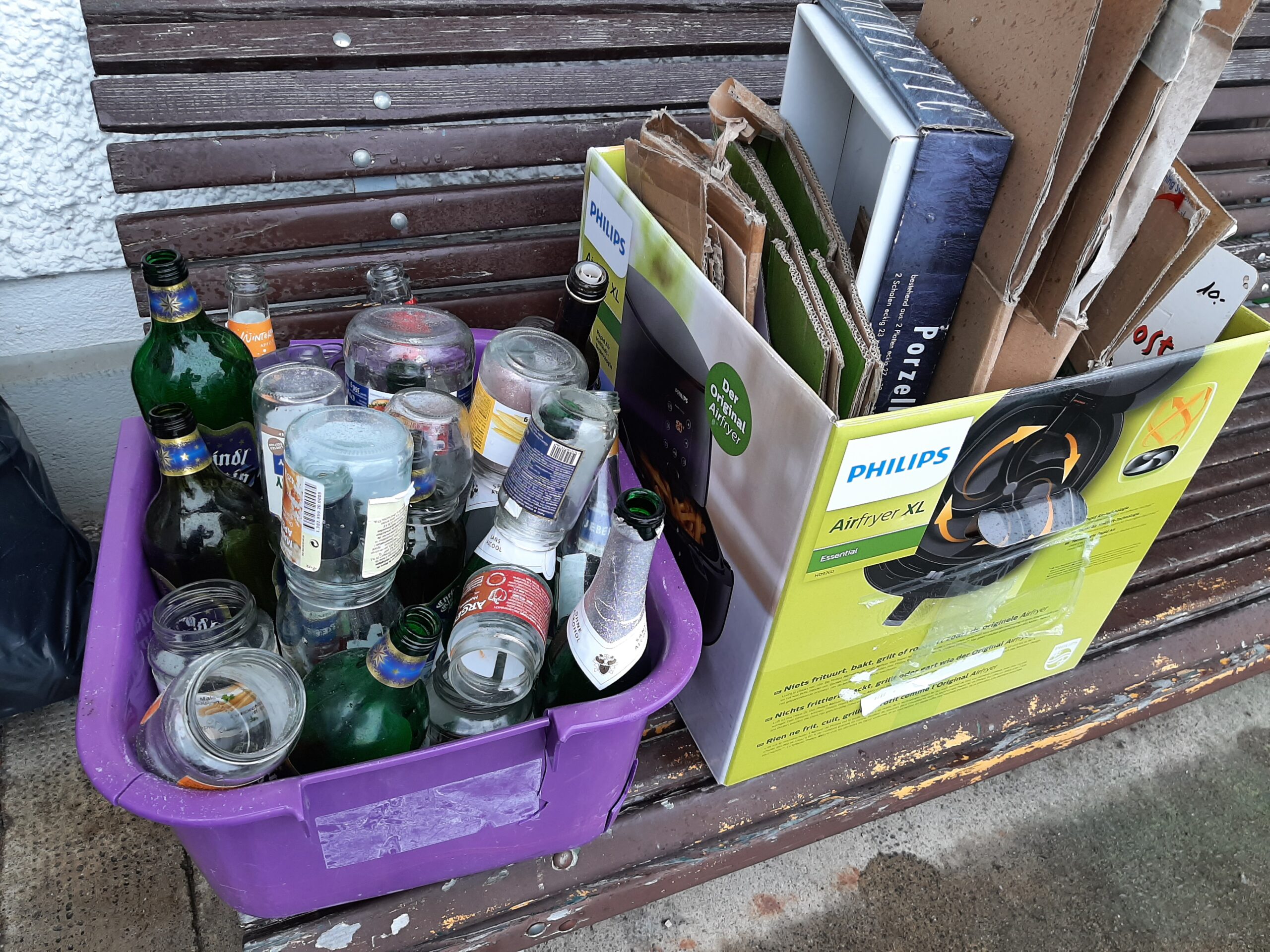 Alt-Papier, alte Karton-Schachteln, Altöl, Speiseöl Alu- Büchsen, Blechdosen, Flaschenglas Farben weiss, braun, grün Kleider, Schuhe Kleider, Nespresso-Kapseln , Altpapier, Karton , Batterien, Eisen, Metalle, Velos, Pfannen, Eisenrohre, Grillgeräte, Elektro Kleingeräte, Leuchten und Leuchtmittel, Styropor, leere PET-Flaschen und Dosen